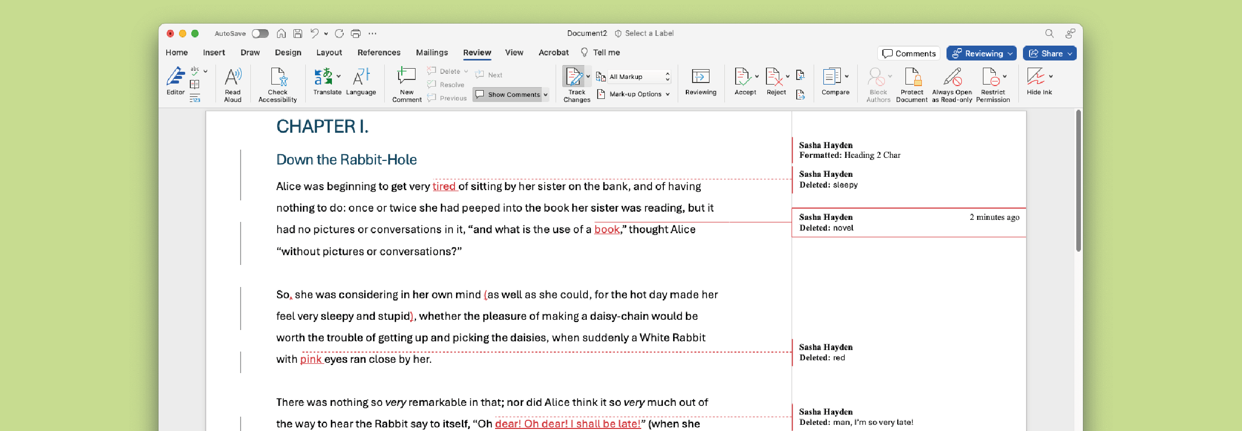 A screenshot of the tracked changes feature within Microsoft Word