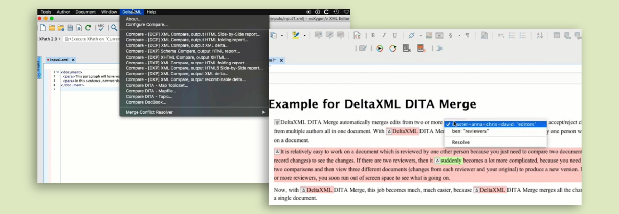 Ever wanted the powerful DeltaXignia comparison technology natively within the oXygen XML editor? Well now you can, our oXygen adaptor can easily find all of your installed DeltaXignia comparison products and perform comparisons without you ever having to leave the oXygen application.